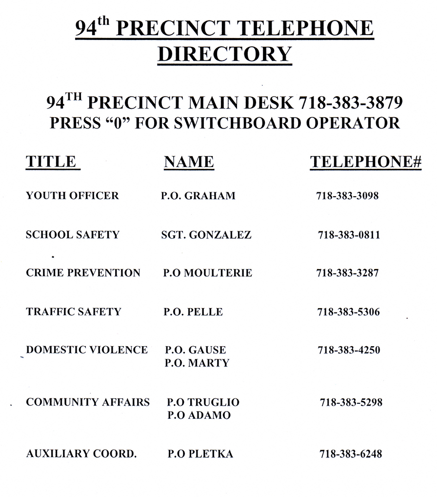 Click here for this year’s schedule of 94th Precinct Community Council Meetings.*